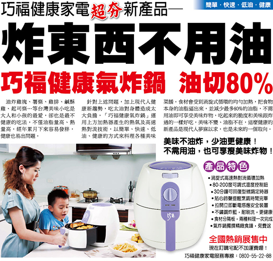 對了~我還google了一下巧福-健康氣炸鍋(UC-358) 評論,很多網友都說很好用!
